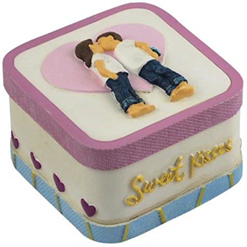 WL SS-WL-18478 Boy & Girl Sharing Sweet Kiss in Blue Jeans Trinket Box, 2"