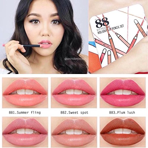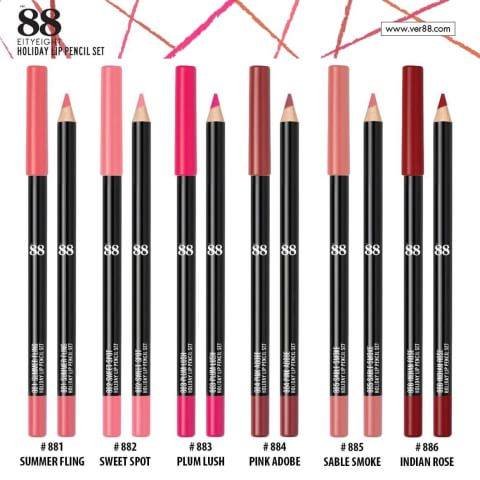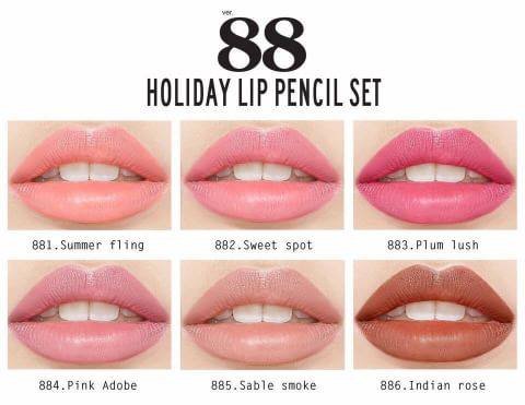 Ver.88 Holiday Lip Pencil Set From Korea 6 In 1 Shades Color Water Proof Make Up[Get Free Tomato Facial Mask & Ceramine UV Line Ginkgo Plus...