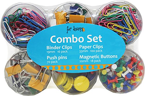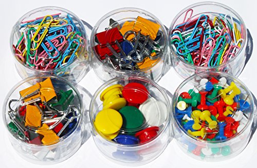 Office Supplies All In 1 Combo Set - Paper Clips, Binder Clips, Push Pins and Magnetic Button (204 pc. Set)