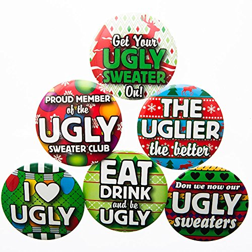 Ugly Sweater Buttons Lot of 12 Christmas Holiday Party Favors