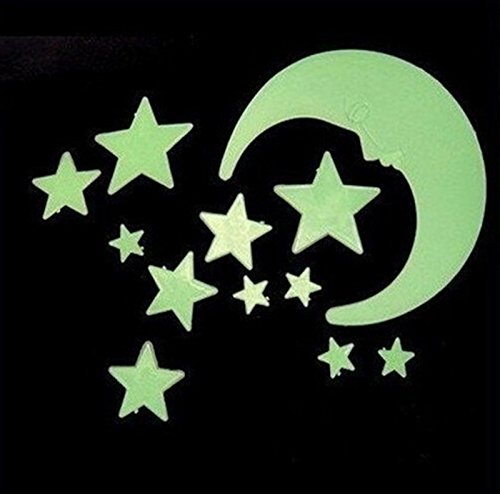 -. Title : Wall Stickers Home Decor Glow In The Dark Star Moon Stickers Decal Baby Kids Gift Nursery Room Luminous pack of 12 pcs