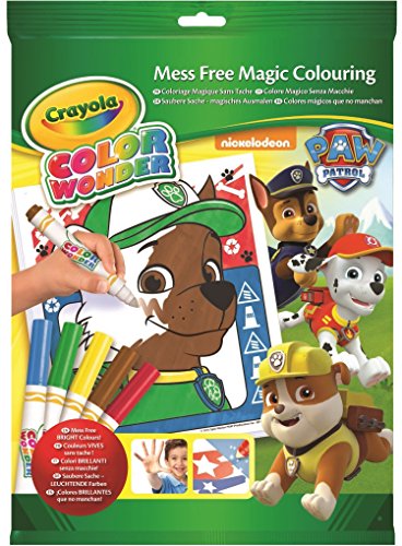 - Includes 18 Paw Patrol coloring pages and 5 broad line Color Wonder markers