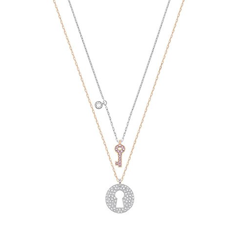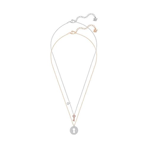 From Swarovski, the Crystal Wishes Key Pendant Set comes with two necklaces that can be layered together for an on trend, mixed metal look, or worn separately for more understated style. Another great idea is to keep one of the necklaces and gift the other to a close friend or family member to remind them of your special bond. The pink crystal pave key pendant on one of the necklaces pairs beautifully with the lock cutout pendant on the other necklace, indicating that you and your loved are a perfect fit! The shorter necklace is 14 7/8 inches in length and the longer necklace is 15 3/4 inches, both have extenders for adjustability.Feature
