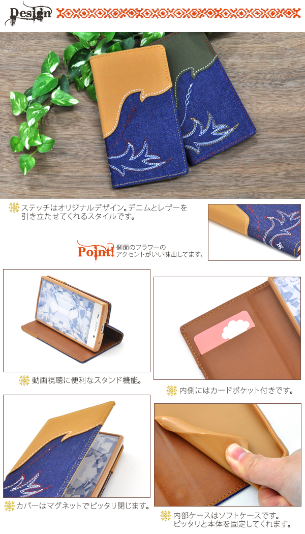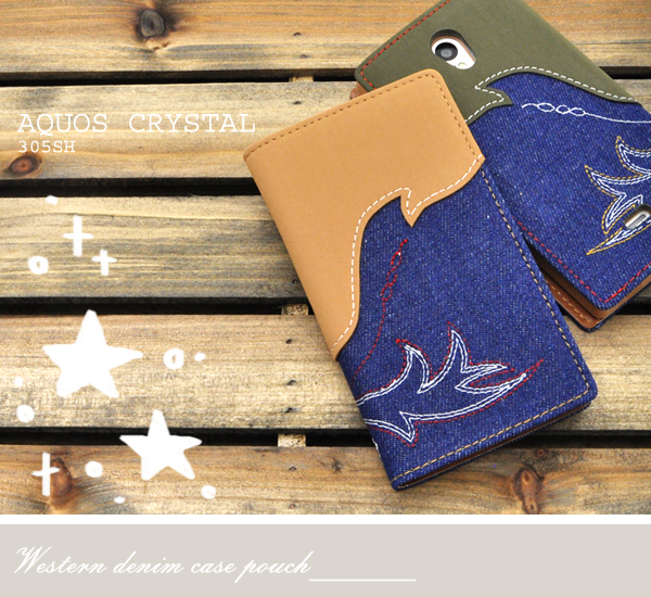 AQUOS CRYSTAL 305SH用のウエスタンデニムケースポーチ。