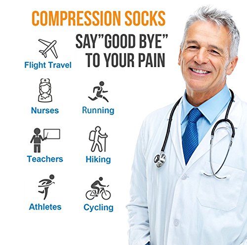 Are your foot problems affecting the quality of your daily life?? On your feet for long hours and looking for Excellent Effective Support?? How Does Compression Socks Help You? - Offers sturdiness and stability to your foot with a snug fit, and still allows for full range of motion? - Reduce plantar fasciitis/ achiles tendon/ metatarsal/ heel pain symptoms and swelling? - May help aid your recovery? - Breathable and comfortable as we use anti itch material? - Insulated to keep your feet and leg warm, and offer great heel/ arch support? - Stays in place and does not slide down? - Retains shape even after multiple washes? - Anti bacterial material to reduce odor? - Allows greater flexibility motion with no skin chafing or irritation? People with the following symptoms may benefit from Compression socks:? - Tired, aching, fatigued, and swollen feet? - Shin splints, and calf muscle pull? ?-Plantar fasciitis, and achilles tendonitis? - Edema, lymphedema, and venous insufficiencies? - Post-surgical recovery, and athletic recovery? - DVT, spider veins, and varicose veins? - Common occupations that may benefit from compression socks:? - Nurses and doctors? - Masseurs, cosmetologists, and stylists? - Frequent travelers or anyone taking a long plane flight? - Teachers, Warehouse, packing, or delivery occupations? - Business people with desk positions that require prolonged sitting? - Construction workers, chefs, line workers, and restaurant serving staff? - Jobs that require you to be on your feet a lot and MORE!? 0 |