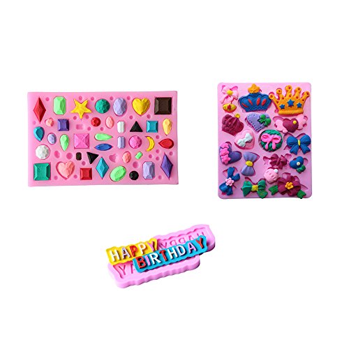 - Includes 1 crown bowknot mold,1 happy birthday mold and 1 jewel mold.(As shown in the first picture).