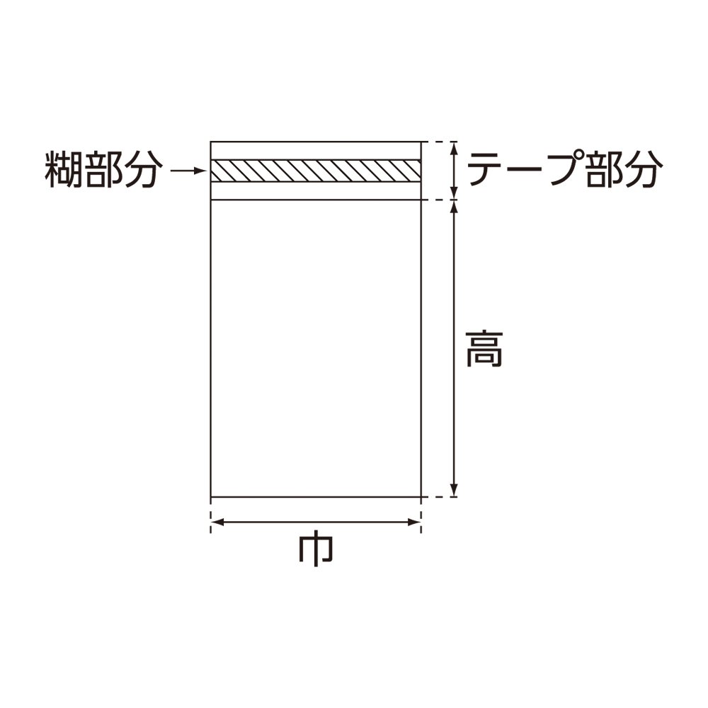 1枚サイズ:巾100×高150×テープ部分40mm 商品特徴:封のできるテープ付き。帯電防止加工。 内容量:100枚入 素材:オリエンテッドポリプロピレン(OPP)