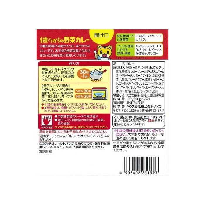 하우스 1세경부터의 야채 카레 100g(50g×2 포)×5개