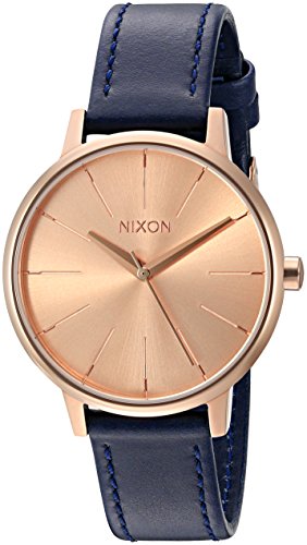 A classic, versatile Nixon watch. Slim markers detail the round dial. Leather band. Adjustable length and buckle closure.