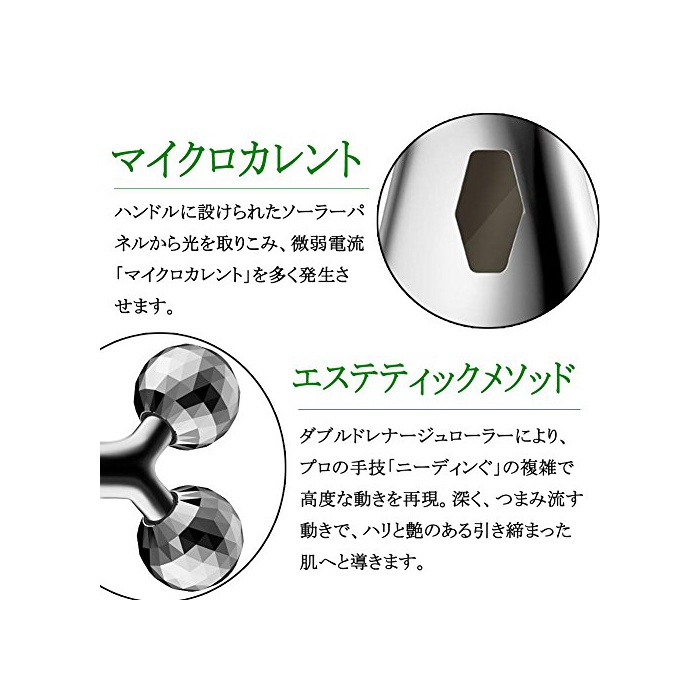 ★마이크로 current손잡이에 설계 된 솔라 패널은,빛을 잡기 붐비고,미약 전류「마이크로 current」가 발생됩니다.미전류에,콜라겐 조직 림프의 생성,혈액의 흐름(유행)을 촉진하는 것 를 할 수 있습니다.부어 오르고, 해리,주름의 소거에 효과도 있습니다