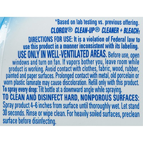 ReleaseDate : 2016-06-01 Studio : Clorox Company Publisher : Clorox Company Binding : Health and Beauty Product Description With 2 bottles of Clorox Clean-Up Bleach Cleaner Spray in Fresh scent and 4 S.O.S Sponges, this value pack combines a powerful cleaning solution with the sponges you need to scrub away germs and dirt. Clorox Clean-Up Bleach Cleaner Spray cleans and disinfects killing 99.9% of bacteria and viruses on hard non-porous surfaces, while the S.O.S All Surface Scrubber Sponge cuts through tough messes on most surfaces throughout your home. Packed with leak-proof seals, the 2 bottles of Clorox Clean-Up Bleach Cleaner are easy to use. Just peel the secure seal off the bottle, align the tip of the trigger to the opening, insert the trigger into the bottle and press down until the trigger clicks into place. , The combination of Clorox Clean Up and S.O.S sponges are perfect for everyday clean up in the kitchen or bathroom. Spray Clorox Clean-Up Bleach Cleaner on countertops or bathroom tile to help kill viruses and germs and remove a variety of stains. With the angled shape of the S.O.S Sponge, you can reach those hard to get areas. Get the power of clean with Clorox Clean-Up Bleach Cleaner Spray and S.O.S All Surface Scrubber Sponge Value Pack. 0