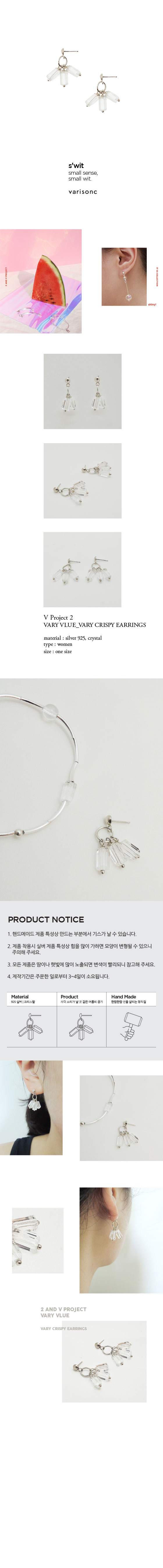 - 주문시 유의사항 : - 925실버와 크리스탈로 제작된 귀걸이 제품입니다.. - 제작기간은 주문한 일로부터 3~4일이 소요됩니다. - 핸드메이드 제품 특성상 만드는 부분에서 기스가 날 수 있습니다. 실버제품 특성상 힘을 많이 가하게 되면 모양이 변형될 수 있으니 주의해 주세요. - 제주 및 도서산간 지역은 추가배송비(3,000원)가 부과됩니다. VARY CRISPY EARRINGS