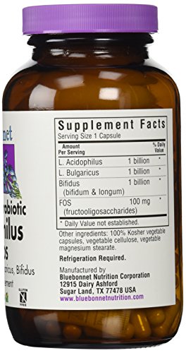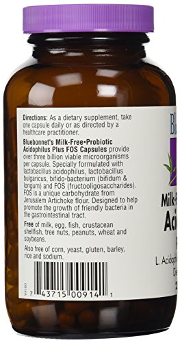 BlueBonnet Probiotic Acidophilus Plus FOS Vegetarian Capsules, 250 Count