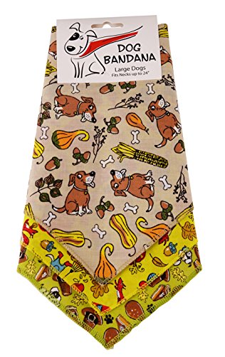 Pack of 3 Tie on triangle Thanksgiving bandanas. Measures 29 inches, suitable for Large dogs. V-neck shape for perfect fit, decorative stitch with matching thread for stylish look. Perfect gift for Pet lovers, Proudly made in the USA.Feature