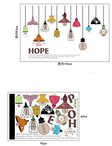 -. Binding : Kitchen -. Brand : BIBITIME -. Color : Multicolor -. EAN : 6731526401234 -. Feature : Original Packing Size:60 cm * 90 cm & 23.62" * 35.43" / DIY Size approx: 155 cm * 93 cm & 61.02" * 36.61" (All product outward appearance, the size color take the material object as, the picture only supply the reference.) / This Colorful style wall decal is sure to bring your living room with a feeling of cool and peace. Gather your families here and have fun. / Special Colorful Ceiling Lamp design for this is decorative and make your room special. It will give an amazing touch to your home interior. / A beautiful wall art wall decal for your home or office will give your room a refreshing look, create an enchanting atmosphere. -. IsAutographed : 0 -. Label : BIBITIME -. Manufacturer : BIBITIME -. Model : 2173 -. MPN : 2173 -. PackageQuantity : 1 -. PartNumber : 2173 -. ProductGroup : Home -. ProductTypeName : HOME -. Publisher : BIBITIME -. Size : 61.02" * 36.61" -. Studio : BIBITIME -. Title : BIBITIME Colorful Hanging style Chandelier Wall Decal Ceiling Lamp Art Sticker for Living Room Girls Bedroom Nursery Vinyl Mural