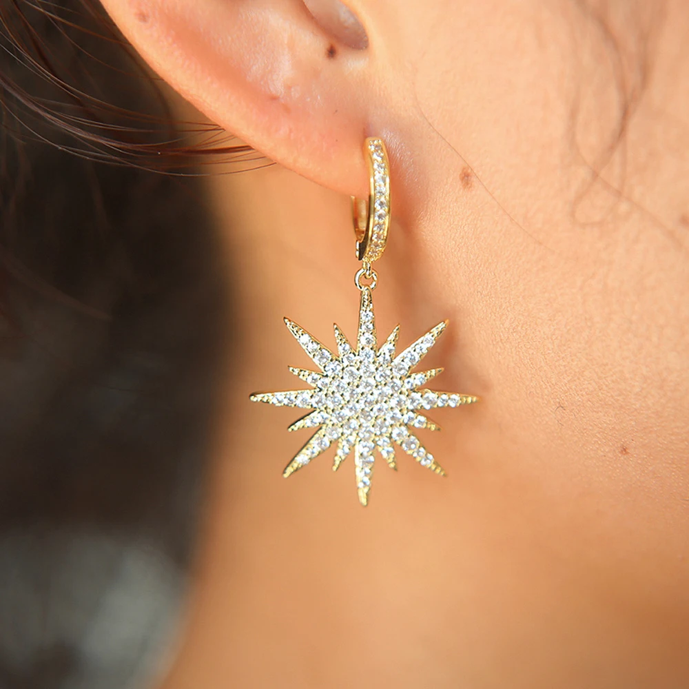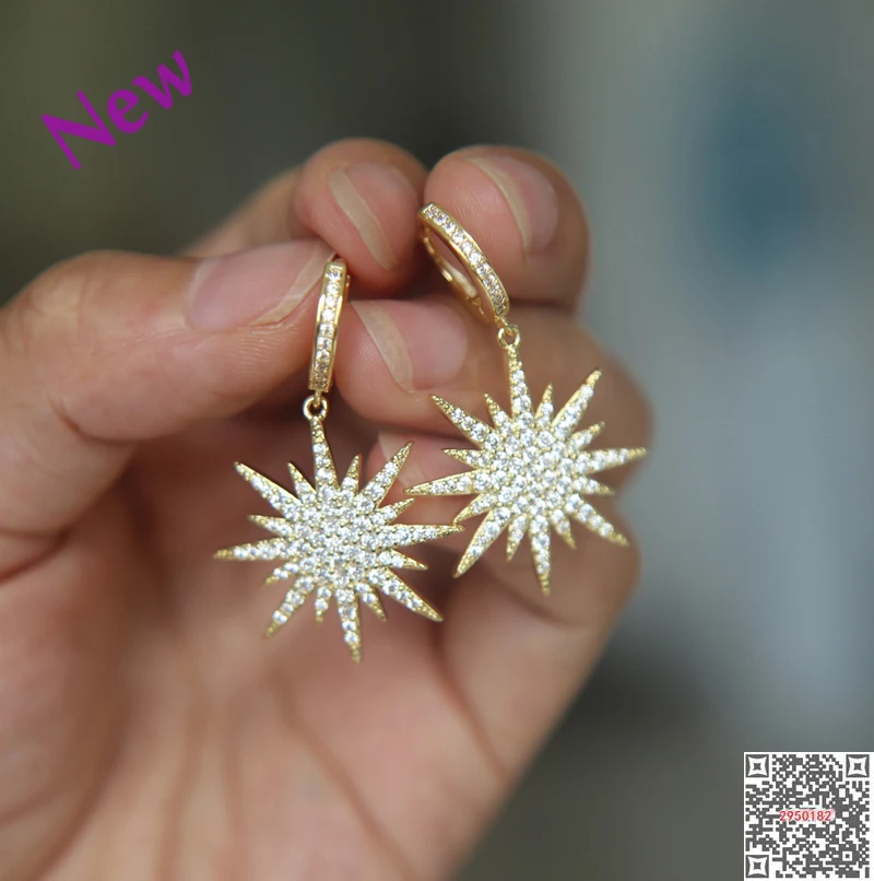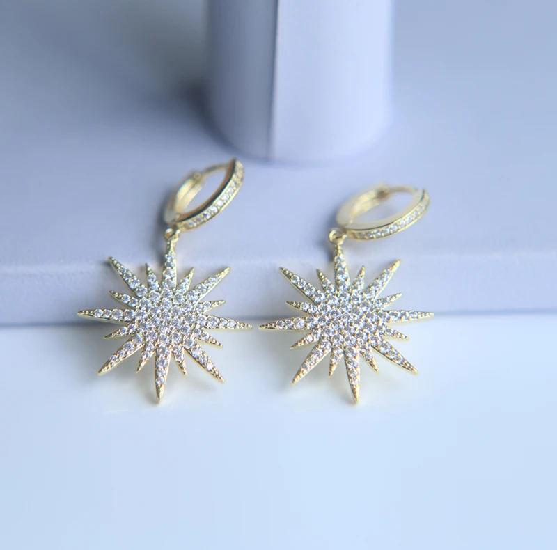 item name:Free Gift Box Luxury Female Zircon Drop Earrings Gold Color CZ Crystal
