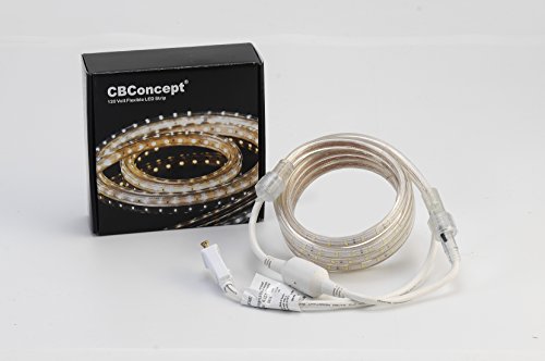 CBConcept UL Listed, 6.6 Feet, 720 Lumen, 4000K Soft White, Dimmable, 110-120V AC Flexible Flat LED Strip Rope Light, 120 Units 3528 SMD LEDs, Indoor/Outdoor Use, Accessories Included, [Ready to use]