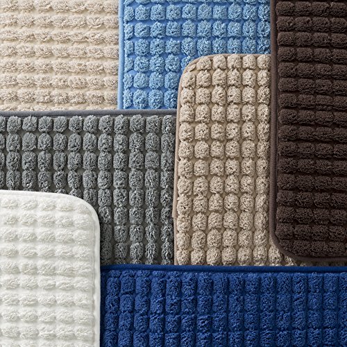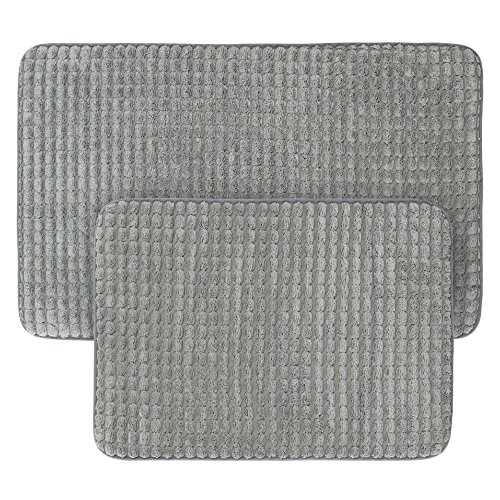 -. Feature : Memory foam bath mats / Material: 280 GSM woven jacquard fleece / Super soft and absorbent, non-slip backing, machine washable / Mat color: Platinum / Dimensions: large bath mat: 31.5 inches (length) x 20.5 inches (width) x .25 inches (height), small bath mat: 24 inches (length) x 17.5 inches (width) x .25 inches (height)