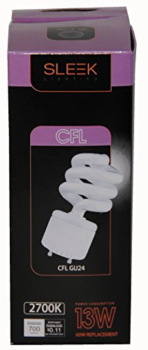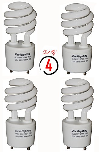 SleekLighting 13Watt T2 Spiral CFL Light Bulb 2700K 700lm GU24 base - 4pack