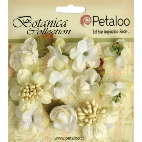 Petaloo Botanica Minis Decorative Flower, 1-Inch, White, 11-Pack