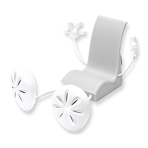 Stereo speaker amplifier for any iSing, MP3, CD player or radio plug & play. Amplifies anything with a headphone jack. Compact design makes it great for bathroom counter top, outdoors, desks or taveling. Flexible hands bend to secure your audio device. Available in pink, blue, green & white.