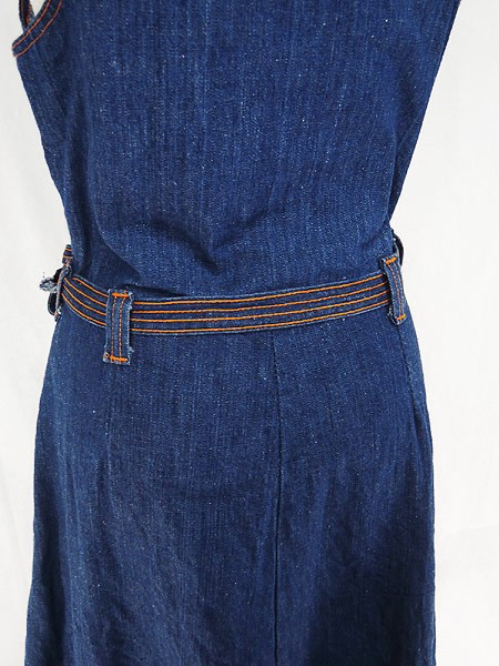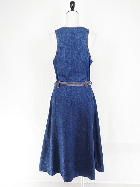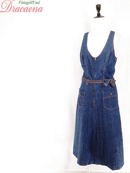 Ladies ブランド- カラー青 メール便不可 コンディション★★★ 素材デニム 表記サイズ9・10 実寸サイズ 着丈 115 cm 身幅 43 cm 肩幅 35 cm 袖丈 27 cm ※ウエスト・ヒップ以外は平置き採寸