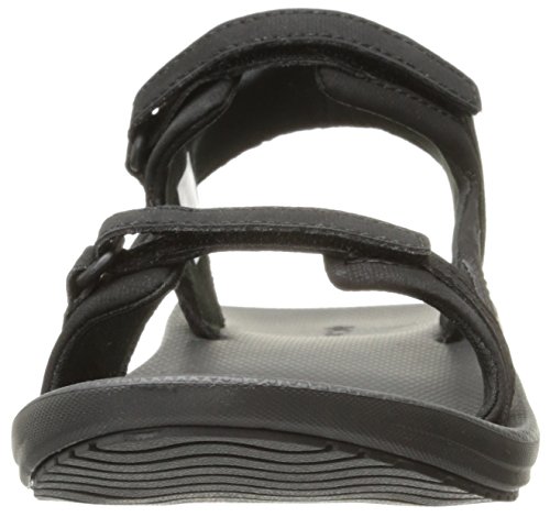 Product DescriptionThis traditional 2-strap sandal features adjustable hook and loop closure straps for a snug fit that’s easy to jump into and out of, and an anatomical contoured footbed that cushions and protects your foot with every step0