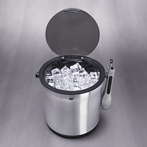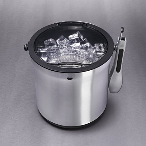 -. Feature : Set includes: attractive brushed stainless steel Bucket and Tongs / Double-wall construction keeps cold inside and prevents outer condensation; Bottom channels catch melted ice, keeping it away from remaining whole cubes / Flip-top lid for easy access and secure closure; Clear lid reveals level of remaining ice / Non-slip base; Soft, comfortable, non-slip grip on handle / Tongs feature sharp teeth to easily grab ice and attach to sides of Bucket; 4 quart capacity / Tongs are dishwasher safe, hand washing recommended for Bucket
