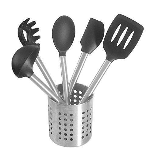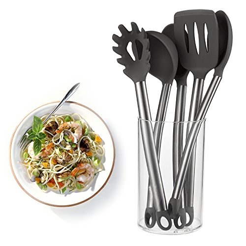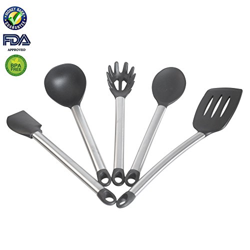 -. Feature : * FOOD GRADE MATERIAL - Premium 5 piece kitchen utensils set with professional grade stainless steel handles and durable silicone heads. Will not melt or burn like other utensils. Silicone cooking heads to provide the most durable and heat resistant cooking utensils available. / * SAFE AND RELIABLE - FDA approved. BPA free. Latex free. Heat resistant up to 480 degrees. Will not melt like other rubber or plastic utensils. Finally a design that perfectly integrates silicone with stainless steel. Will not scratch expensive nonstick cookware, baking pans or bakeware. Cleanup is fast and easy. / * MEET ALL YOUR NEEDS-Complete cookware set covers all kitchen needs including spaghetti server, serving spoon, spatula, slotted turner and soup ladle. / *EASY CLEANUP & DURABLE- Our kitchen utensil set combines durable silicone heads with thick stainless steel handles to provide the ultimate kitchen tools available with easy cleaning (dishwasher safe) and non-scratch silicone. / *LIFETIME GUARANTEE: The Kitchen Utensils comes with a 100% Money Back.