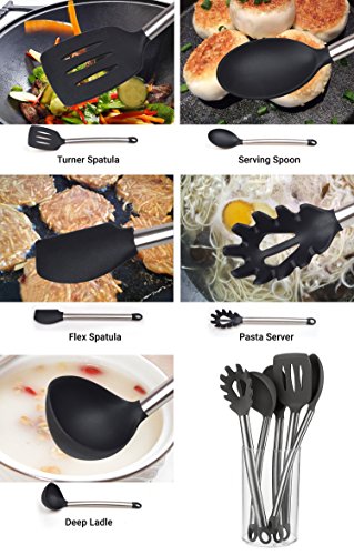 -. Title : Kitchen Utensils, Silicone Cooking Utensil Set 5 packs - All Purpose Spatula, Serving Spoon, Pasta Server, Turner Spatula Kitchen tools Gadgets ultimate cooking baking set black cooking utensils set