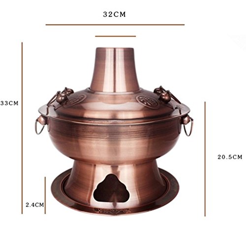 DD2 Chinese Traditional Old Beijing Charcoal Hot Pot (Diameter 34 CM, Red Copper)