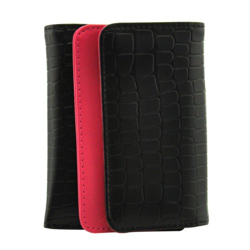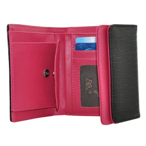 - Feature : Description: Buttoned black faux leather stone patterned wallet / Dimensions: 4.5 x 3.5 x 1.25 inches / Highlights: Multi-layered slots (2 credit cards slots, 1 id window, coin purse, bill pockets, side pockets with zipper credit cards slots, 1 id window, coin purse, bill pockets, side pockets with zipper) / Fit for all: City wallets for fab women and ladies , fashionable girls and teens