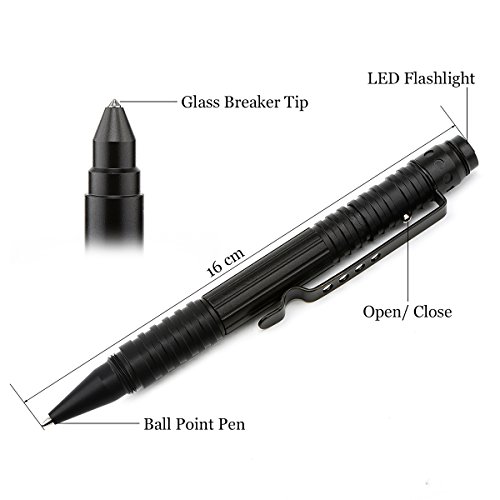 -. Feature : ● Tactical Pen made from lightweight Aircraft Aluminum, with Superior Strength & Portability. / ● Ultra strong, durable carbide tip glass breaker for Survival and Self Defense. / ● Ideal for those who loves outdoors & activities such as hiking, trekking,hunting and more.It's necessary when camping, hiking, adventures, survival and in emergency situations. / ● Easy to carry in a pocket, bug out bag or every day carry (EDC). / ● Perfect for writing in an emergency situations.