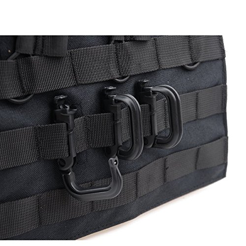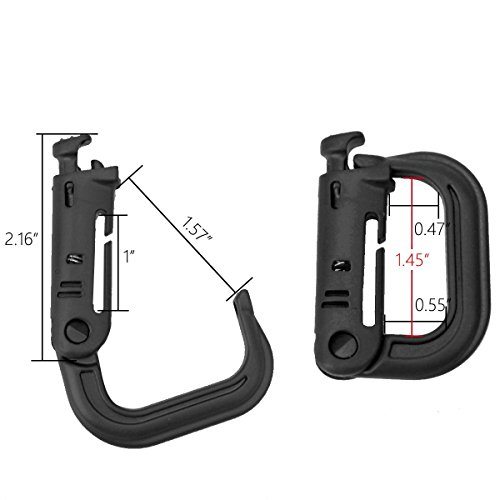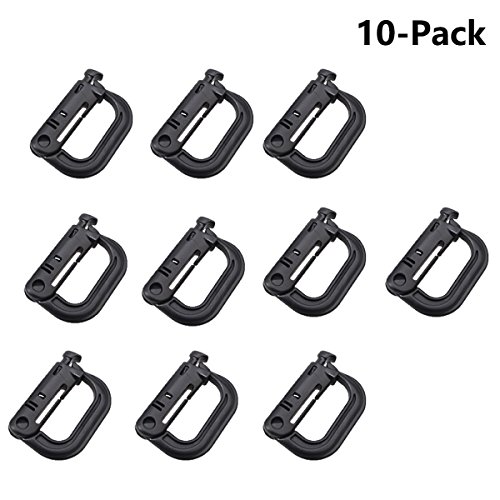 -. Binding : Misc. -. Brand : Emma angel -. EAN : 1909071968976 -. Feature : Color : Black Materials: Plastic / Can be used on any 1" wide piece of webbing and replaces the metal carabiner for attachment of lanyards, weapons, and accessories Speed clip as it is, the release button is textured for ease of use with gloved hands and works / Latch design of this hanging hook comes with a detent to maintain an open position if needed and, while strong enough to carry equipment / Used extensively by the Army and Marine Corps -. IsAutographed : 0 -. IsMemorabilia : 0 -. Label : Emma angel -. Manufacturer : Emma angel -. MPN : li168 -. PartNumber : li168 -. ProductGroup : Sports -. ProductTypeName : SPORTING_GOODS -. Publisher : Emma angel -. Studio : Emma angel -. Title : Tactical Multipurpose Small D-Ring Locking Hanging Hook Tactical Link Snap Keychain Button Release for Molle Webbing (10-Pack)