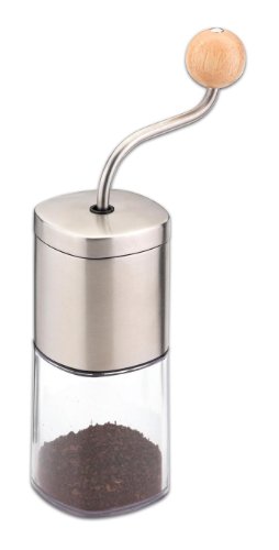 -. Feature : Perfect for grinding all grades of coffee bean / Great for an authentic cup of coffee / Durable grinding arm with wooden details / Stainless steel body and ceramic grinding mechanism / Hygienic and fully washable coffee container