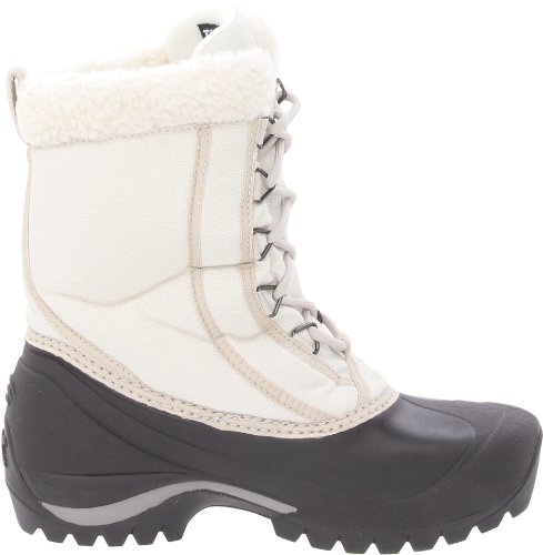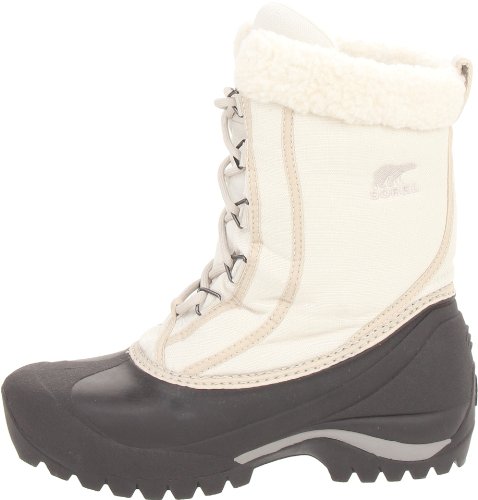 Product Description If you like the comfort and design of the Sorel Moresby and Crestwynd snow boots but the notion of a zipper jam gives you a chill, the lace-up Cumberland delivers the same design features without the zip. Unlike the full leather classic Sorel Caribou boot, the Cumberland snow boot has a lighter weight, water-resistant nylon upper that substantially reduces the weight per boot. Behind this tough polyurethane-backed material is a warm and fast-drying Thinsulate insulation that's rated to keep your feet warm all the way down to -25F (-32C). The drawbacks? None if you're outside, but be prepared to clean up after yourself if your mountain chalet mud room has white linoleum or light hardwood floors. The durable rubber black soles will leave marks on some floor surfaces.