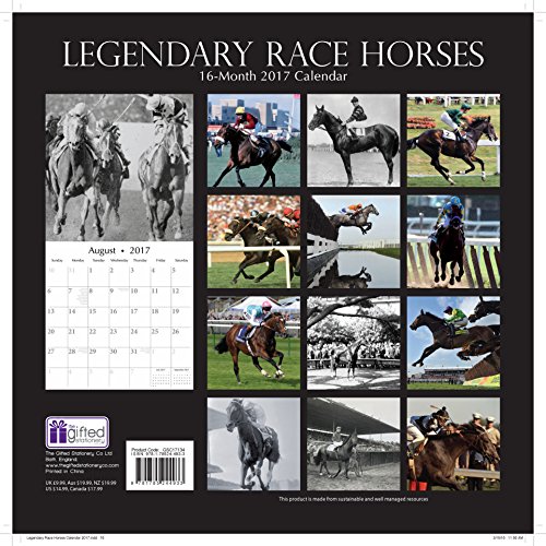Beatufiul Photographs of Legendary Race Horses 2017 Monthly Wall Calendar, 12" x 12"
