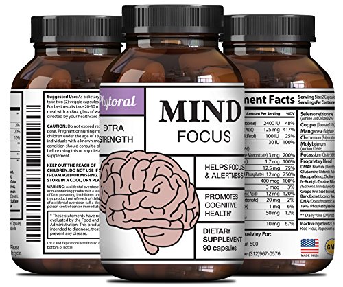 Enhance Brain Memory + Boost Focus + Improve Clarity Mind Booster Supplement For Men And Women - Contains Vitamins + Pure Herbal Ingredients - Natural...