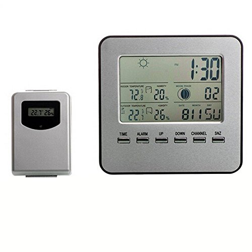 -. Title : Cideros Wireless Electronic Weather Station Alarm Clock with Outdoor Sensor Hygrometer Thermometer Moon phase Indoor Outdoor Use Digital LCD Display