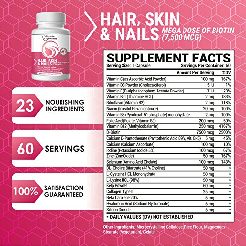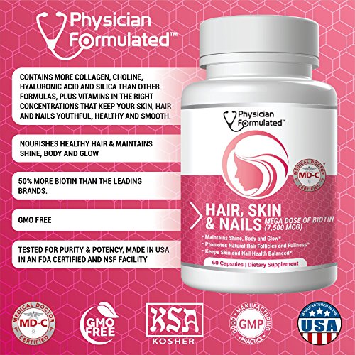 HAIR SKIN AND NAILS VITAMINS Formulated by our Team of Renowned Physicians to Strengthen and Promote Healthy Hair with just 1 Capsule/Day
