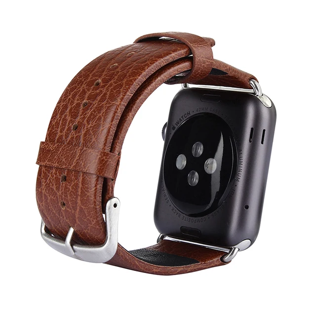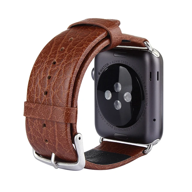 상품 내용 42 미리메터 럭셔리 브랜드 남성 블랙 커피 정품 Lichee 패턴 가죽 시계 밴드 팔찌 스트랩 커넥터 애플 시계 I60.
