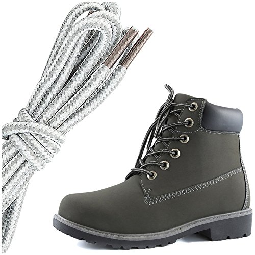 DailyShoes Women's Lace-Up Ankle Padded Collar Work Combat Hard Toe Booties, Grey White, Gray B...
