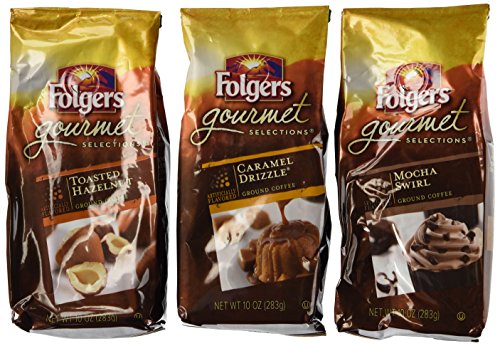 -. Title : Folgers Gourmet Selections Flavored Ground Coffee 3 Flavor Variety Bundle: (1) Folgers Gourmet Caramel Drizzle, (1) Folgers Gourmet Toasted Hazelnut, and (1) Folgers Gourmet Mocha Swirl, 10 Oz. Ea.