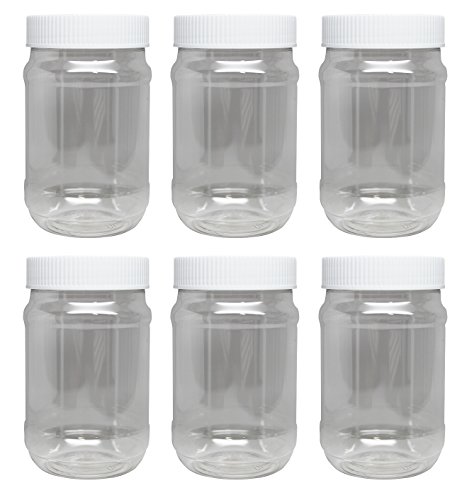 Crystal Clear Plastic Jars with Screw on Lids 16 oz Set 6 Wide Mouth By Pinnacle Mercantile