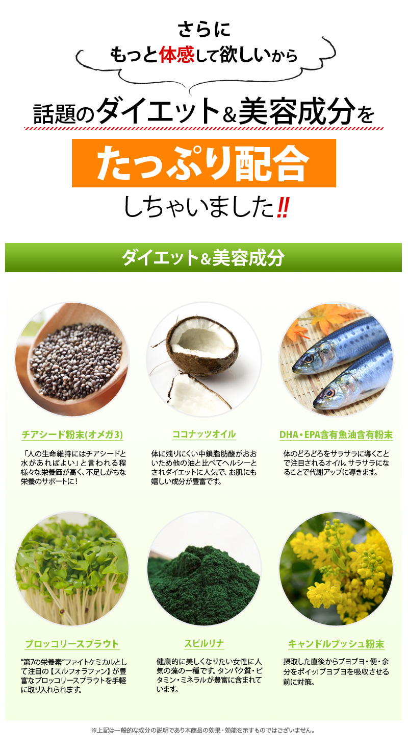 | 原材料名 | チキンコンソメ(麦芽糖、食塩、チキンエキスパウダー、食用植物油脂、食用動物油脂、オニオンエキスパウダー、チキンパウダー、粉末しょうゆ、オニオンパウダー、こしょう、セロリ、酵母エキスパウダー、乳製品)(小麦・乳成分・大豆・鶏肉を含む)、難消化性デキストリン、ホイップパウダー(植物油脂、乳糖、乳たんぱく)、オニオンパウダー、脱脂粉乳、無臭ニンニクパウダー、デキストリン、食用酵母(マンガン、亜鉛、銅、クロム、モリブデン、セレン含有)、ココナッツオイル、精製魚油(DHA、EPA含有)、チアシード粉末、黒胡椒抽出物、コンニャクイモ抽出物、植物発酵末(デキストリン、果実・野菜類、穀物類、野草エキス、糖類、海藻類)(オレンジ・カシューナッツ・キウイフルーツ・ごま・バナナ・りんごを含む)、野草発酵エキス、野草発酵エキス末、植物醗酵エキス末(やまいもを含む)、キャンドルブッシュ、スピルリナ、ブロッコリースプラウト、クコの実末、ヘンプシードパウダー、豚コラーゲンペプチド(ゼラチンを含む)、L?オルニチン塩酸塩、チオクト酸、コエンザイムQ10、ラズベリー果汁パウダー(ラズベリー果汁、マルトデキストリン)/トレハロース、調味料、乳化剤、pH調整剤、カラメル色素、酸味料、ビタミンC、ビタミンE、ナイアシン、パントテン酸Ca、クエン酸、ビタミンB2、ビタミンB1、ビタミンB6、ビタミンA、葉酸、香辛料抽出物、ビタミンD、ビタミンB12 |