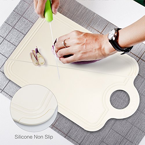 Folding Cutting Board Plastic – Foldable Chopping Mat Board Dishwasher Safe Kitchen Prep Mat with Non-Slip Feet and Deep Drip Juice Groove (Beige)