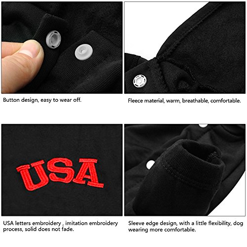 -. Feature : WARM&LIGHTWEIGHT: Made of the soft fleece lining and cotton surface,keep your puppy warm and good feeling. / STRONG STITCHING:The stitching is very compact and rigorous,so long lasting. / CONSIDERATE DESIGN:Button closure design,easy to put on and take off. / FASHIONABLE:"USA"letters on the back with imitation embroidery process, firm and never fade. / 100% guaranteed quality - We guarantee your satisfaction,we will replace or refund your purchase,just enjoy your shopping.