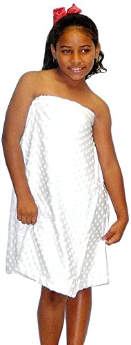 - White minky dot bath wrap sized for youth or young teens