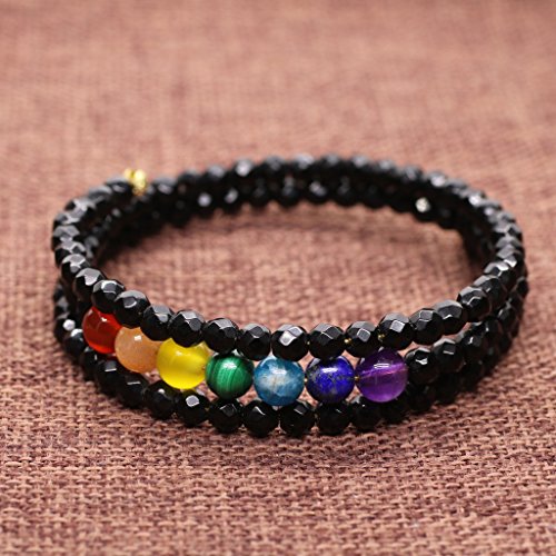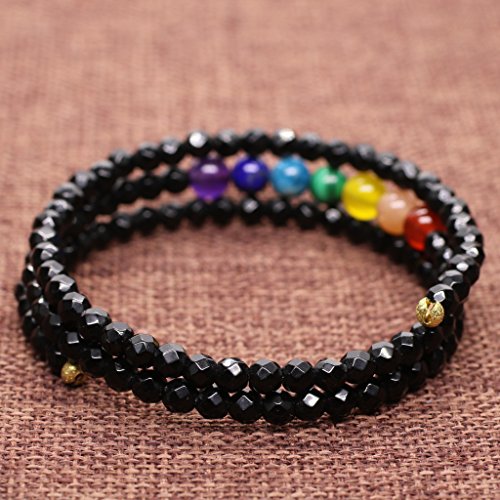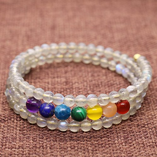 -. Feature : Material: 4mm Labradorite, 6mm 7 Chakra Stones (Red agate, Sunstone, Yellow agate, Malachite, Apatite, Lapis Lazuli, Amethyst) / Chain: Carbon steel wire; About 6.5" in circumference, fits for almost female's wrist size / 7 Chakras are energy centers in our body in which energy flows through in balance with each other. An unbalanced energy field may cause a blockage in the flow of energy / Labradorite is a stone of magic, awakening mystical and magical abilities and psychic powers within you / Come with beautiful GIFT BOX; 90 days warranty & free replacement (Feel free to contact us)