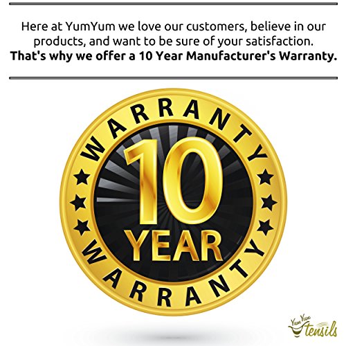 - 10 YEAR GUARANTEE. Here at YumYum we love our customers, believe in our products, and want to be sure of your satisfaction. That's why we offer a 10 year guarantee to all our customers. There will be no quibbling if the product does not meet your expectations, just great YumYum service - guaranteed.